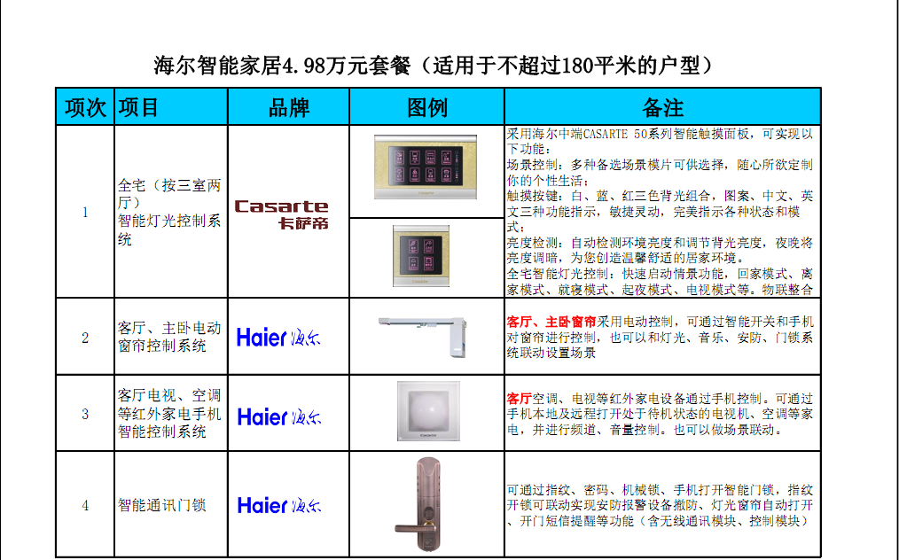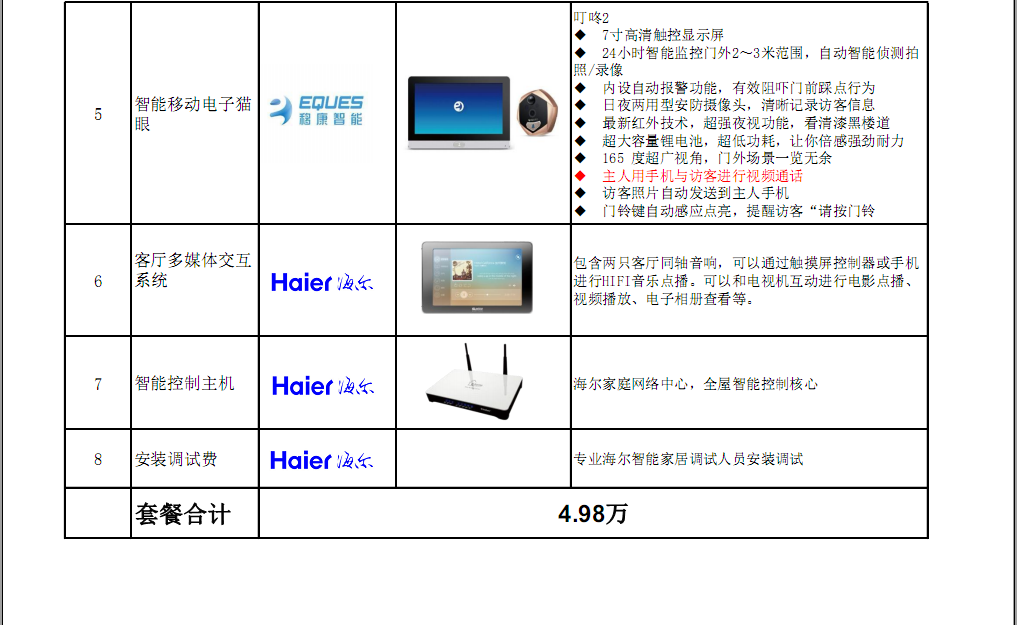 海尔智能家居4.98万元套餐(适用于不超过180平米的户型)